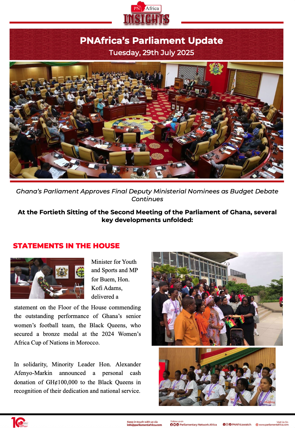 PNAfrica’s Parliament Update – Tuesday, 29th July 2025 Ghana’s Parliament Approves Final Deputy Ministerial Nominees as Budget Debate Continues