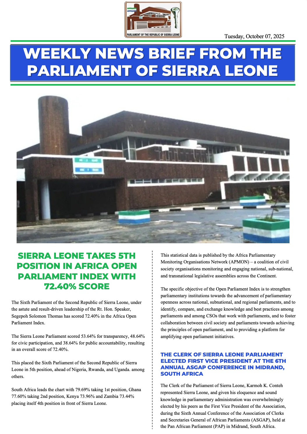 Sierra Leone News Brief: Your weekly summary – 7th October, 2025