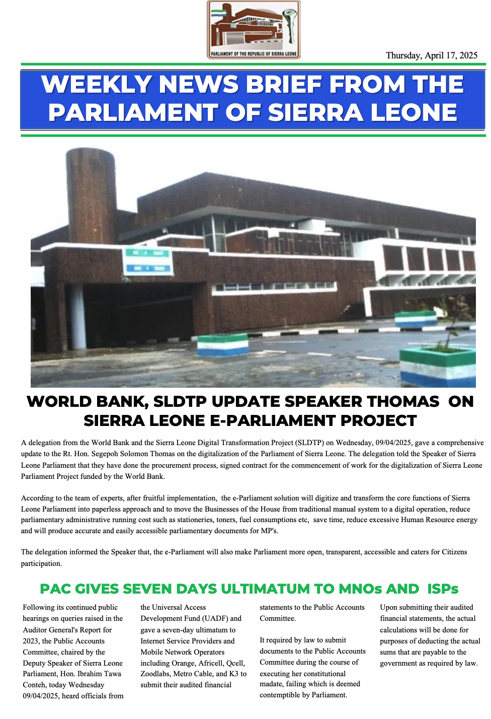 📢 Legislative Alert!Stay updated with the latest developments from the Parliaments of Sierra Leone, Ghana, Nigeria, Côte d’Ivoire, and Senegal.Be informed. Be engaged. Be empowered!