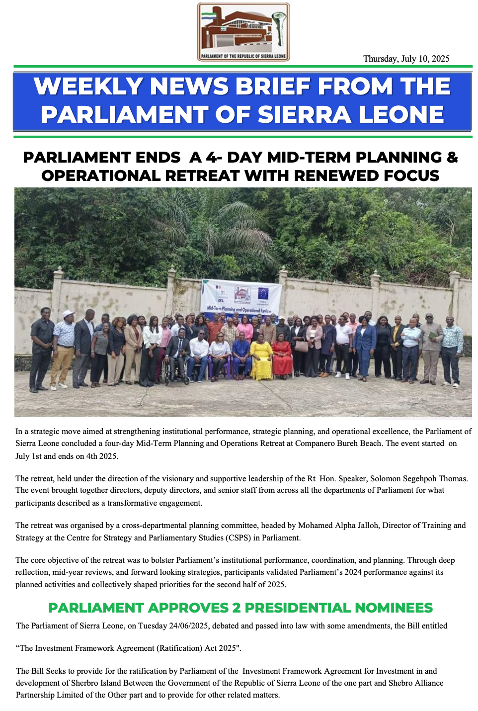Sierra Leone News Brief: Your weekly summary – 13th November, 2025