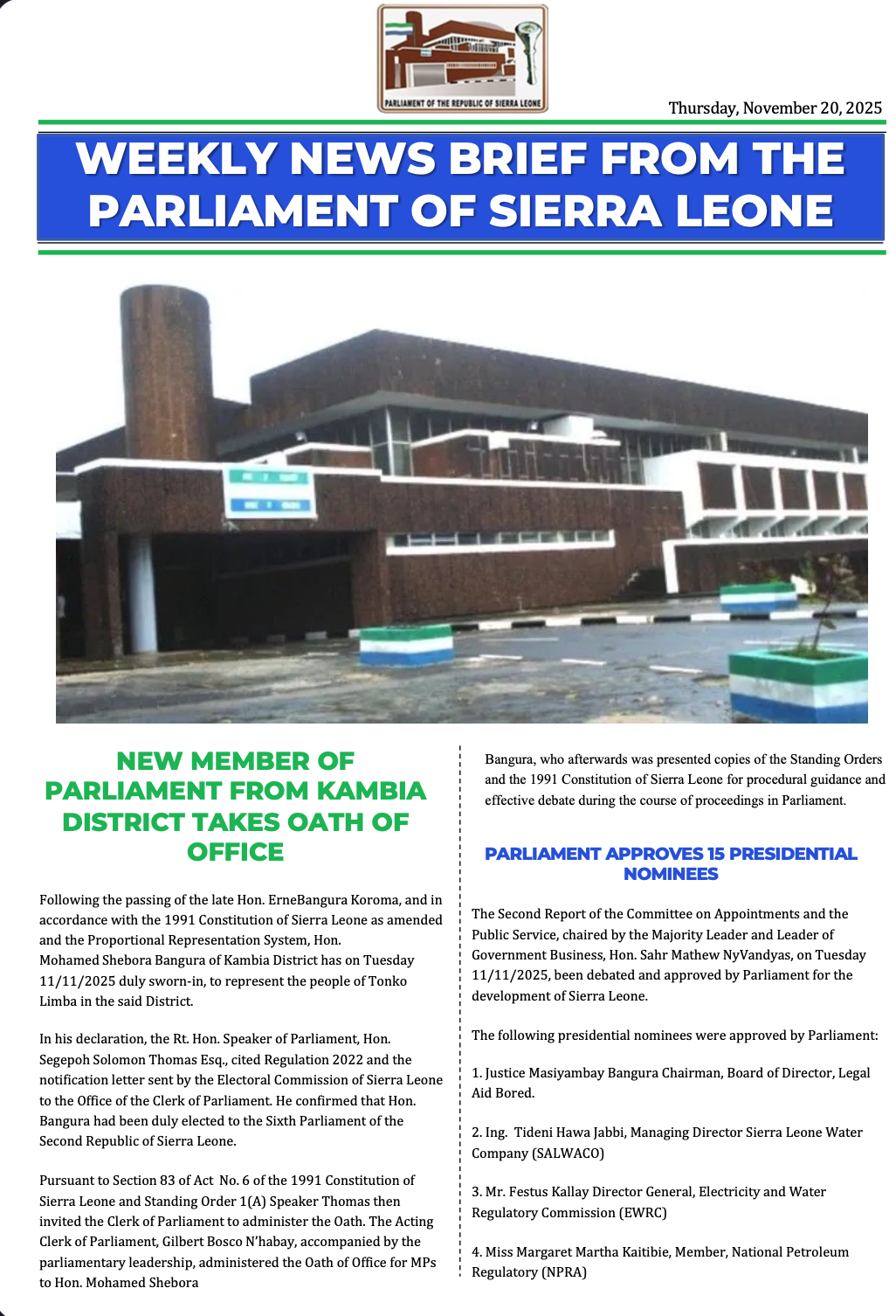 Sierra Leone News Brief: Your weekly summary – 20th November, 2025